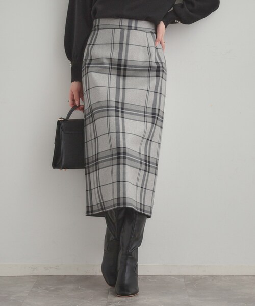 体の線を拾いにくくすっきりと着用できるIラインチェックスカート