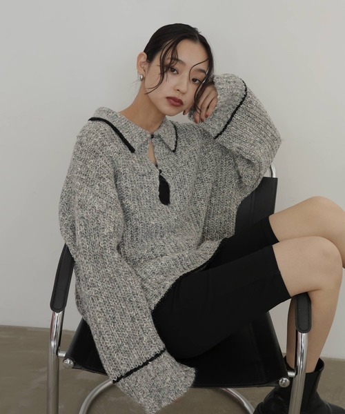 リラクシーなサイズ感とパイピングデザインが魅力のデザインニット。