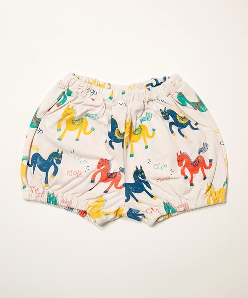 2026年はうま年なので、ちょっとポップでカラフルなポニーを総柄にしてベビーパンツにしました!
