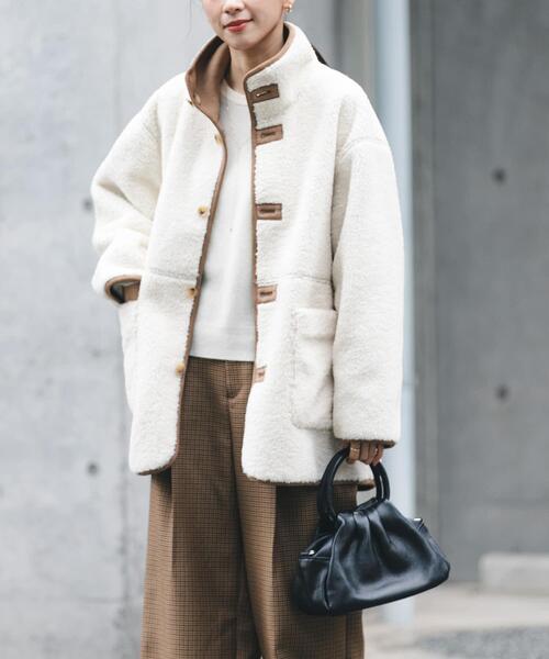 リバーシブルで楽しむ、軽くて上品なフェイクムートンコート。