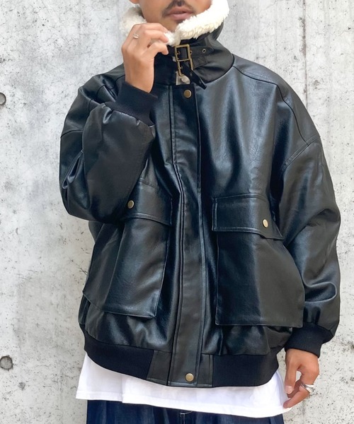 参考商品名:《Javaジャバコラボ》異素材MIXで周りと差がつく。襟ボアレザージャケット
