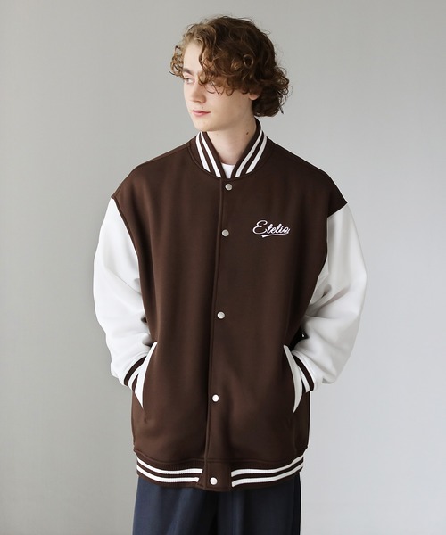 参考商品名:袖切替胸ワンポイントロゴスウェットスタジャン
