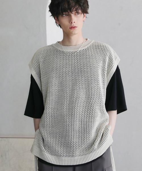 参考商品名:サイドレース透かし編みメランジメッシュベスト