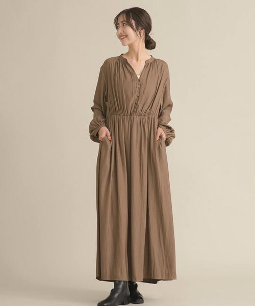 今回はのコラボアイテムをご紹介きれいめな落ち感のある素材で仕立てた、女性らしい雰囲気のワンピース。