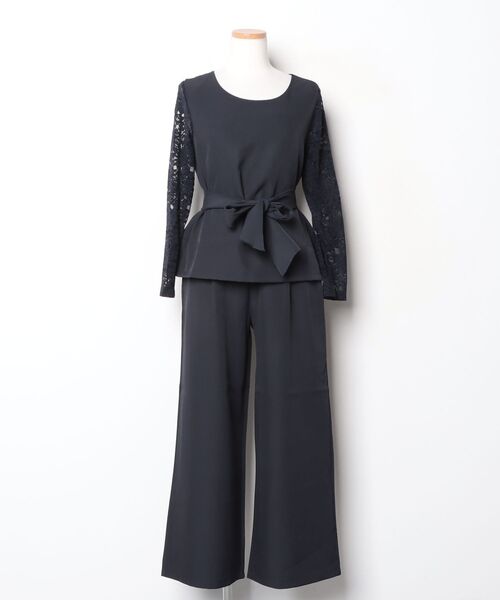 参考商品名:ウエストリボン付きレース袖ワイドパンツドレス・セットアップ
