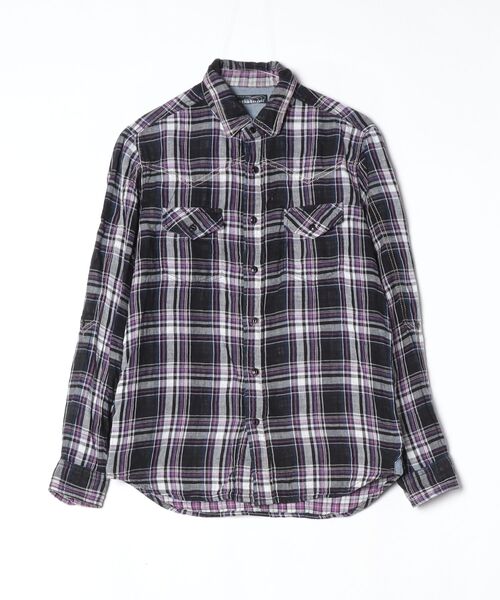 「BEAMS HEART」 チェック柄長袖シャツ L パープル メンズ