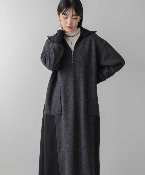 ウール見えの温かいカットソー素材を使用。非ウールなので暖かみがあるのにチクチクせずイージーケアが叶う!両サイドは裏使いで質感の違うラインが細見え効果◎ハーフZIPのLUXなファスナー使いもポイント!今年はハーフニットを開けてシアーインナーをレイヤードして着るのがオススメ!カットソー生地なのに大人なワンランク上の上質なプルオーバー