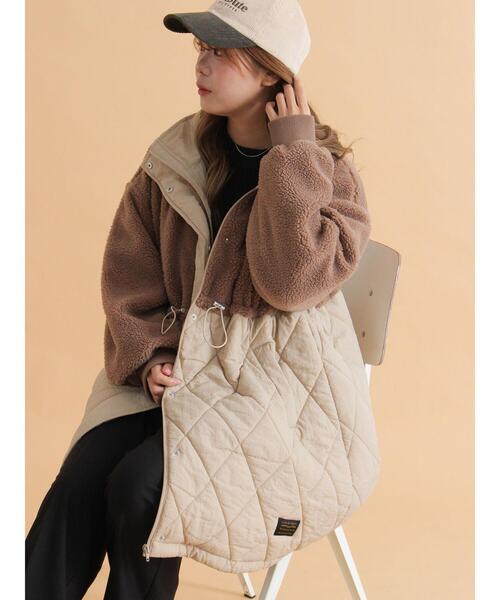 ふんわりとしたボアと、キルト素材を組み合わせた異素材切り替えコート。