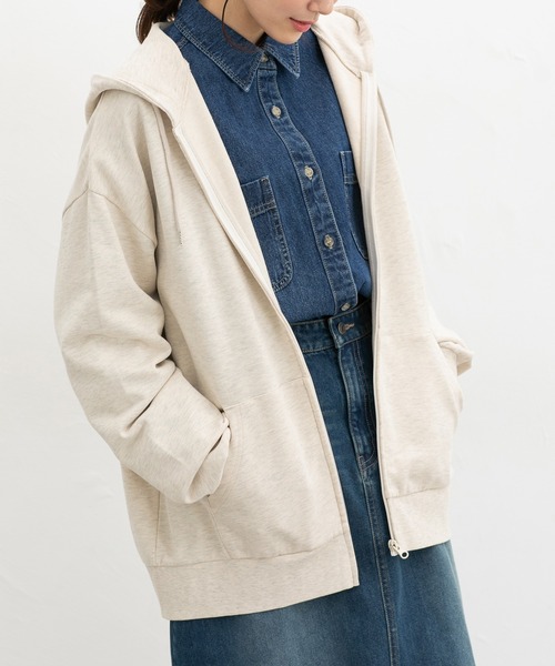 ヒップまですっぽり隠れる丈感のゆったりシルエットでこなれた印象に。
