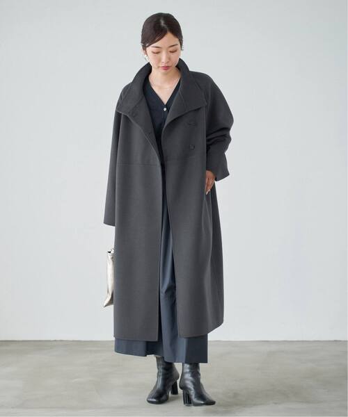 上質な素材感を生かし、そぎ落としたデザインが洗練された印象のスタンドカラーコート。