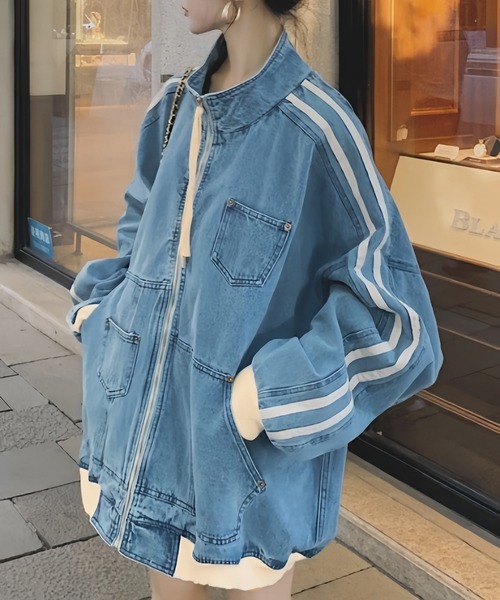 参考商品名:袖ライン入りオーバーサイズデニムブルゾン