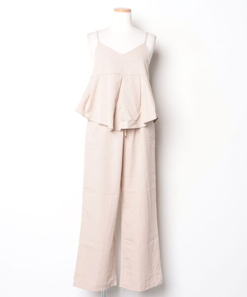 参考商品名:【プリーツペプラムキャミ×パンツ セットアップ】リネンタッチ素材で涼しげな大人の上下セット