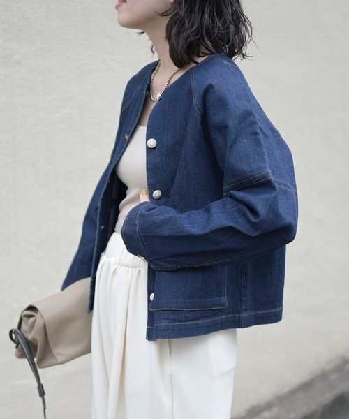 キーワード:デニムジャケット gジャン レディース ボタン 無地