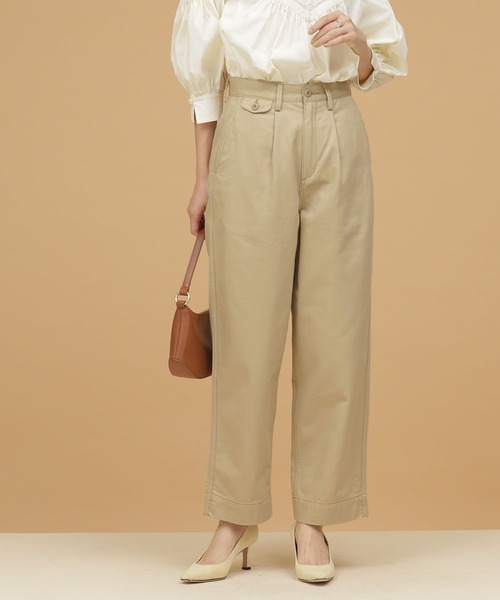 キーワード:チノパン レディース テーパード ハイウエスト フルレングス ワイドパンツ 無地