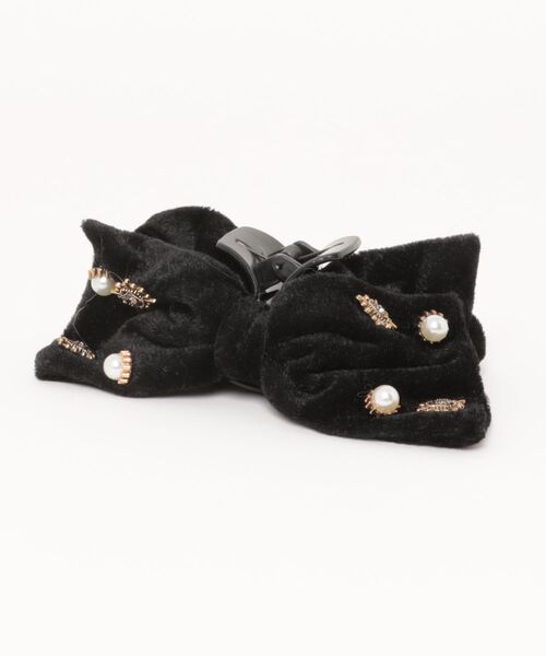 ビジュー & パール ベロア リボン バンスクリップ