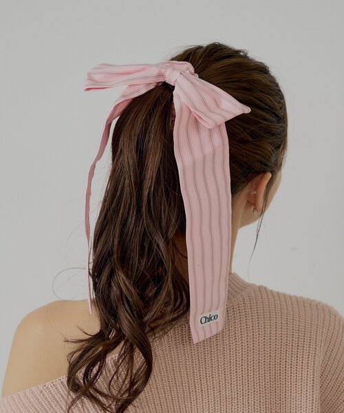 BIGリボンが目を惹くストライプシュシュ登場??商品ポイント・コーディネートの主役になる、インパクトのあるリボンデザイン。