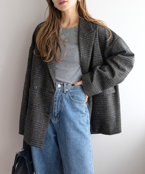 程よいオーバーサイズ感で羽織れるチェックダブルジャケット