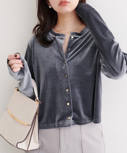 ラメベロアクルーネックカーディガン■Design