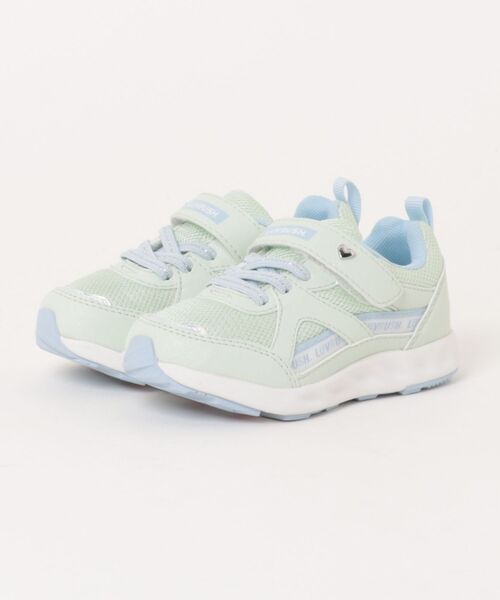 トレンドのスポーティーなロゴ使いや甲バンドのハート飾が