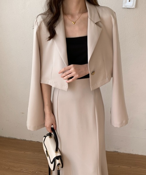 参考商品名:袖スリットショートテーラージャケット&ハイウエストマーメイドスカートセットアップ
