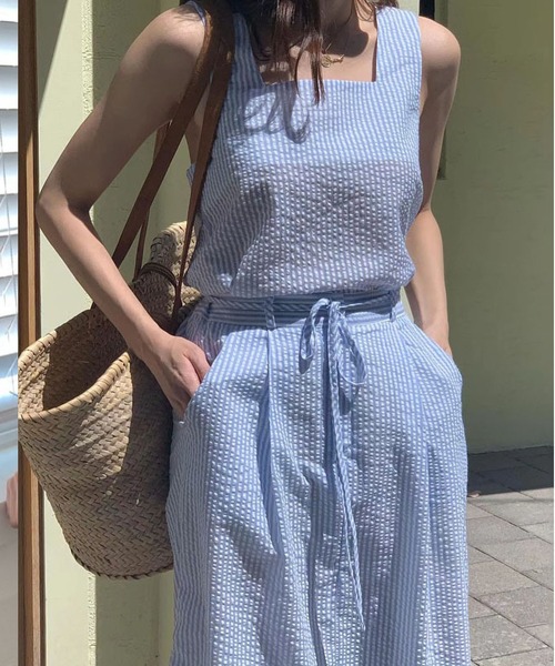 参考商品名:ストライプ2点セットアップ(ノースリーブのシャツ+スカート)