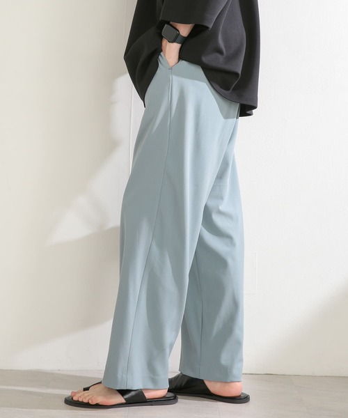 キーワード:パンツ メンズ ウエストゴム ストレート ハイウエスト フルレングス ワイドパンツ 無地