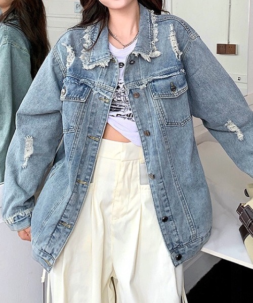参考商品名:フリンジデザインダメージデニムジャケット
