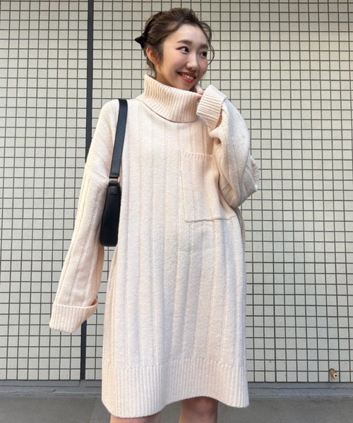 オーバーサイズで全体的にシェイプされていないシルエットなので身体のラインを拾わず、体型カバーもできるニットワンピース。