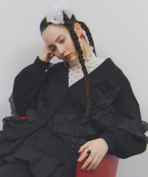 フロントと袖にフリルを施すことで程よい甘さで楽しめる1枚に。