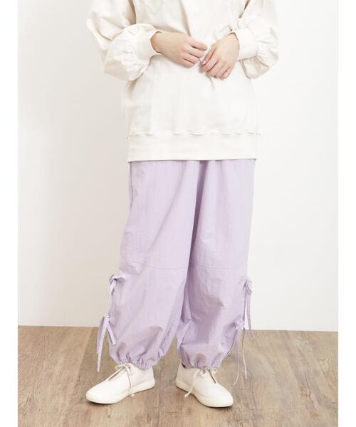 キーワード:パンツ レディース ウエストゴム クロップド ハイウエスト リボン