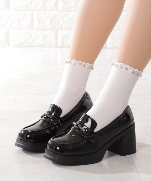参考商品名:エナメル調 チェーン付き ハイヒール 厚底 ローファー
