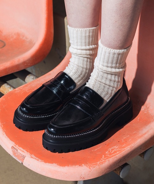 参考商品名:高反発クッション入りで柔らかい履き心地【EVOL】スタッズコバトラックソールローファー IU5007