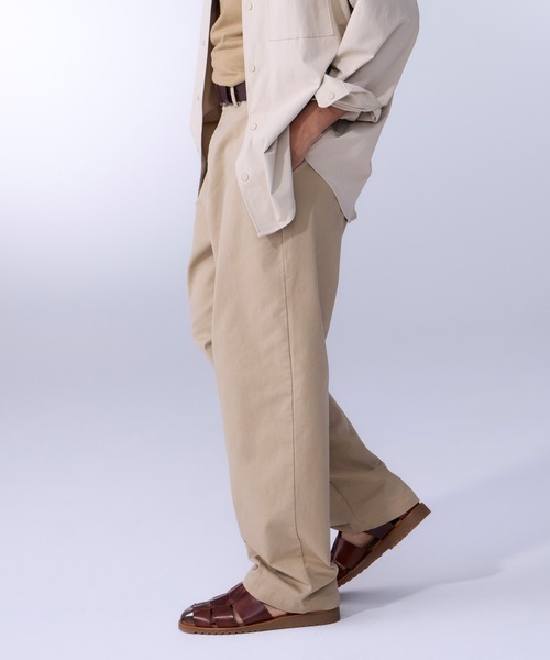 キーワード:チノパン メンズ ストレート ハイウエスト フルレングス ワイドパンツ 無地