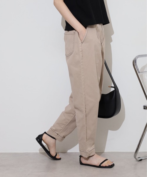 キーワード:チノパン レディース ウエストゴム ストレッチ テーパード ハイウエスト フルレングス ワイドパンツ 無地