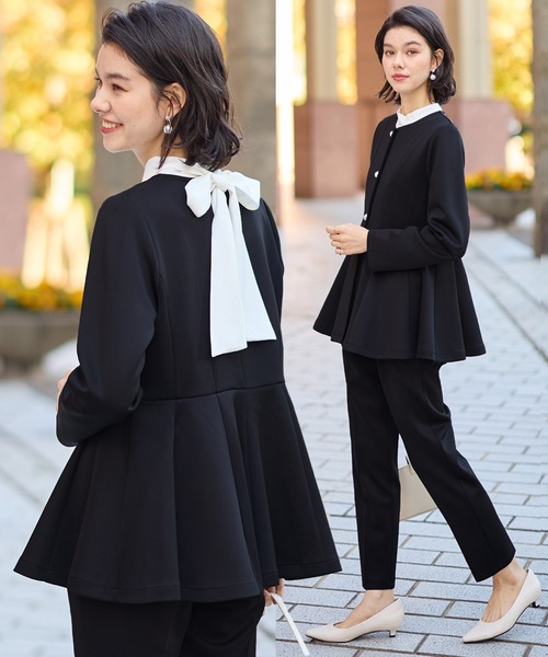 【ペプラムジャケット】+【テーパードパンツ】の2点セット