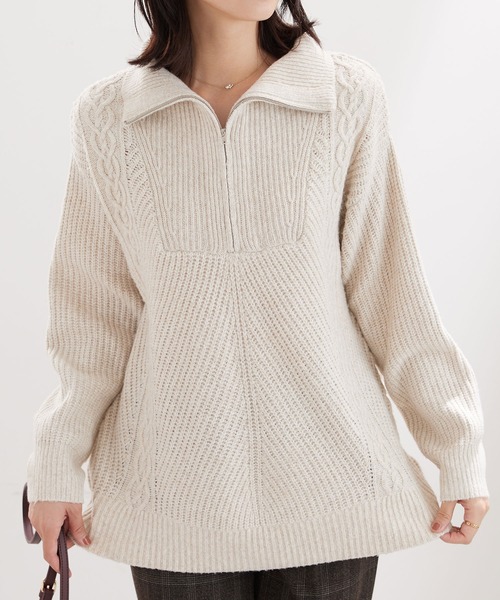 《 ”すっきりキレイ見え” 寒い日の頼れるミカタ!ハーフジップ使いニットチュニック♪ 》【ポイント】