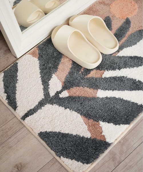 植物のシルエットや抽象的なサークルモチーフを大胆に配置したデザインで、敷くだけでインテリアの印象をアップデート。