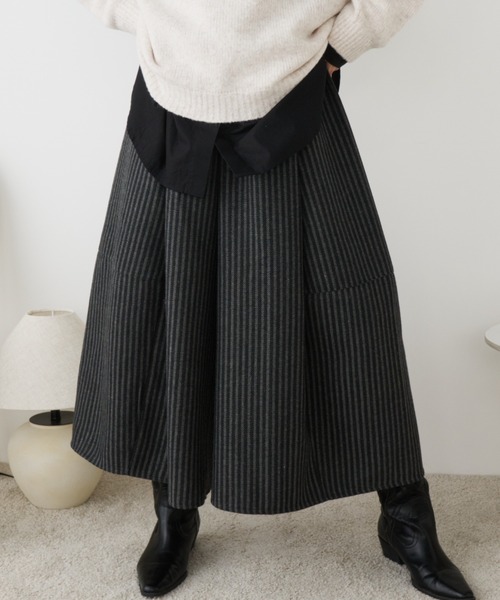 ゆとりのあるワイドシルエットは、中に重ね履きができるので冬のお出かけに最適。