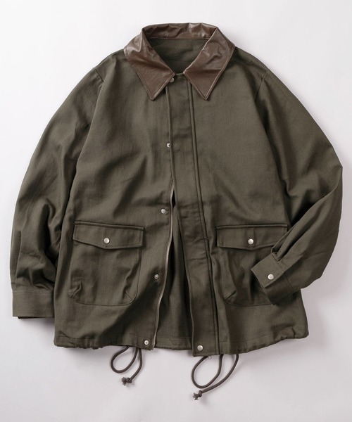 襟フェイクレザー ツイル ハンティングジャケット/アメカジ/ストリート/古着風/ヴィンテージ■おすすめPoint綿100%でしっかりとしたツイル生地を使用したハンティングジャケット。襟がフェイクレザー仕様で、ハンティングジャケット特有の大き目ポケットが特徴。ジャケットが持つ80〜90'sのクラシックな雰囲気に現代のトレンド感をMIXする事で新しい古着スタイルを表現しています。様々なスタイリングにも相性が良く、アメカジ・ワーク・UKスタイルはもちろん、アウトドアから韓国スタイルまで活躍します。