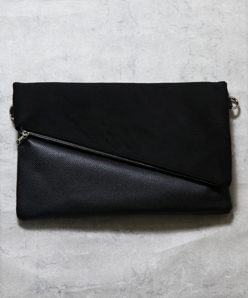 独創的な斜めのフラップデザインが特徴的なクラッチバッグ。