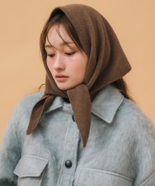 顔まわりを優しく包む三角フォルムと、結ぶだけでこなれ感を演出できるシンプルデザイン