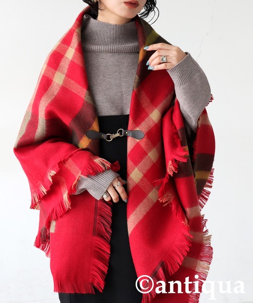 格子状の大柄柄が上品な存在感を放ち、フリンジが動きを生み出しておしゃれ度もアップ。