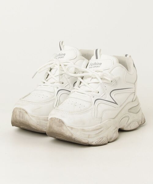 参考商品名:配色 ライン ミッドカット 厚底 スニーカー