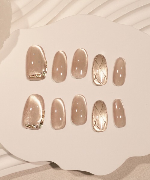 シンプルで落ち着いた印象のネイルチップ。オーバルチップで指先を美しく見せてくれます。