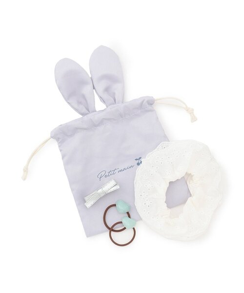 ウサギモチーフの巾着がついているヘアアクセサリーのセットです。
