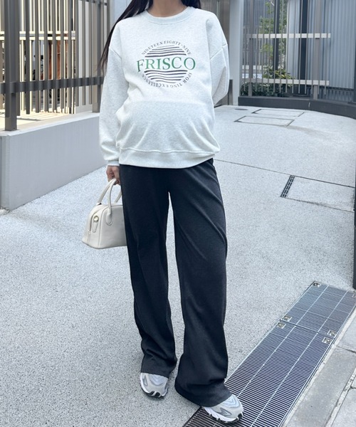 マタニティウェア/らくらくパンツ/リブストレートパンツ/ウエストゴムパンツ/スタイルアップ