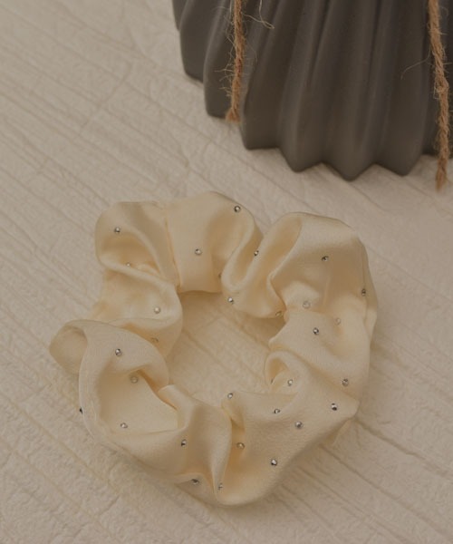 シュシュ 「resonance」サテン キラキラ ストーン ニュアンスカラー シュシュ