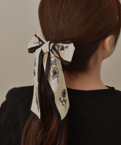 スカーフ バンダナ 「resonance」花柄 モノトーン スカーフリボン「マルチウェイ/ロングタイプ」 レディース