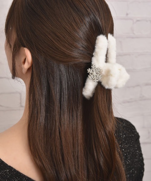 ヘアクリップ 「float」ふわふわ スノーフレーク エコファーバンスクリップ「年末年始/女子会/クリスマス」