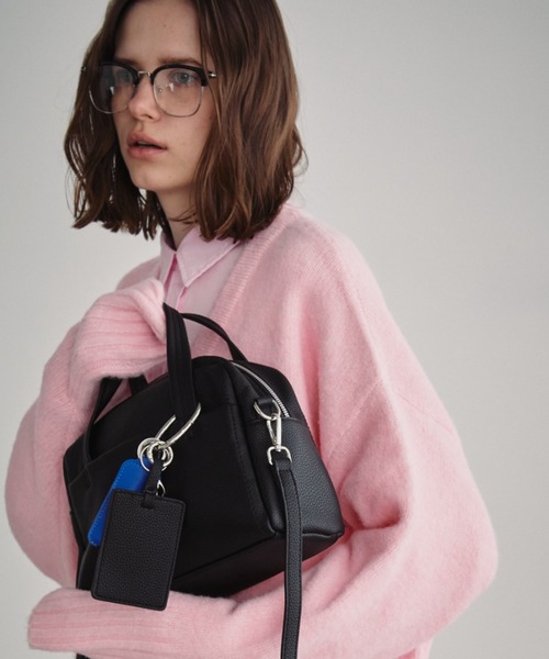 しぼ感のあるフェイクレザーで仕上げたミニマルなボストンショルダーバッグ。